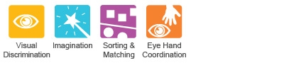 Recommended by occupational therapists and child development specialists for developing cognitive, matching and fine motor skills and strengthening the shoulder muscles.